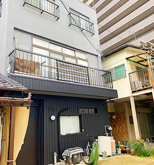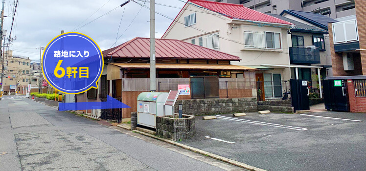 上記の路地を入っていただき、左手6軒目の3階建ての建物です。